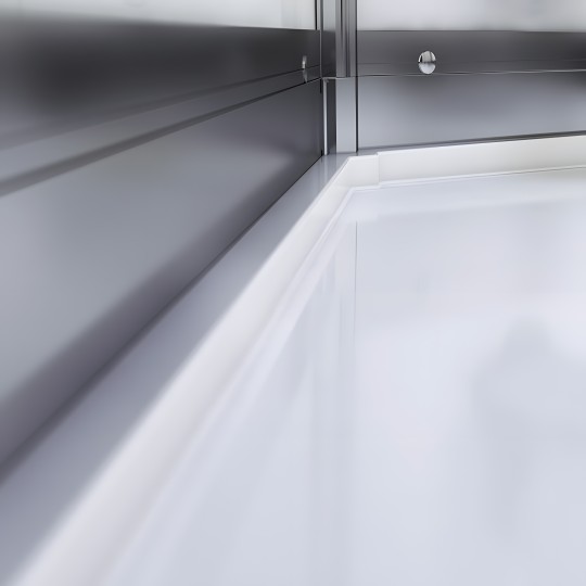 Receveur et toit en composite minéral Roulettes de porte doubles sur roulements Flexible d'évacuation diamètre 40 mm Bonde extra-plate et vidange Pieds du receveur réglables en hauteur Sonde de température |